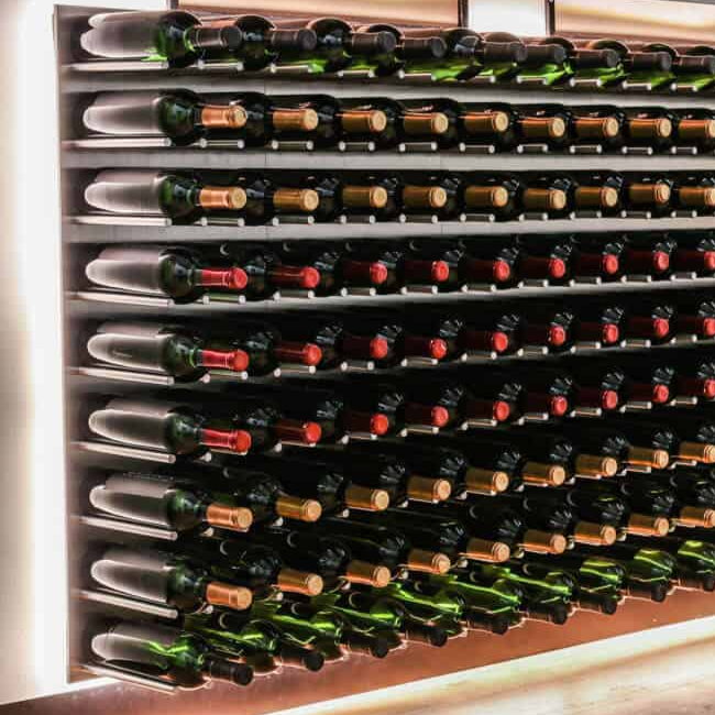 The Fusion Wine Wall was created to shorten installation times, and reduce the costs typically associated with large custom wine wall panels. We offer two styles: Label-Out Wine Wall Rack & Cork-Out Wine Wall Rack.